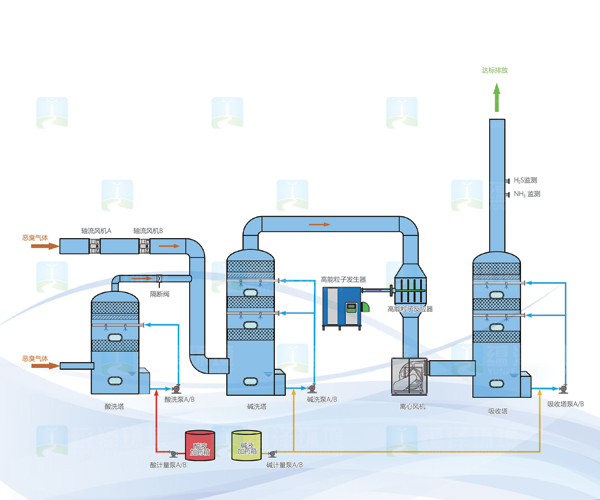 高能粒子活性濃度高(活性粒子濃度達10萬億個/m3),深度凈化惡臭氣體,廢氣處理效率高。惡臭排放指數在1000以下,非甲烷總烴去除率在75%以上。